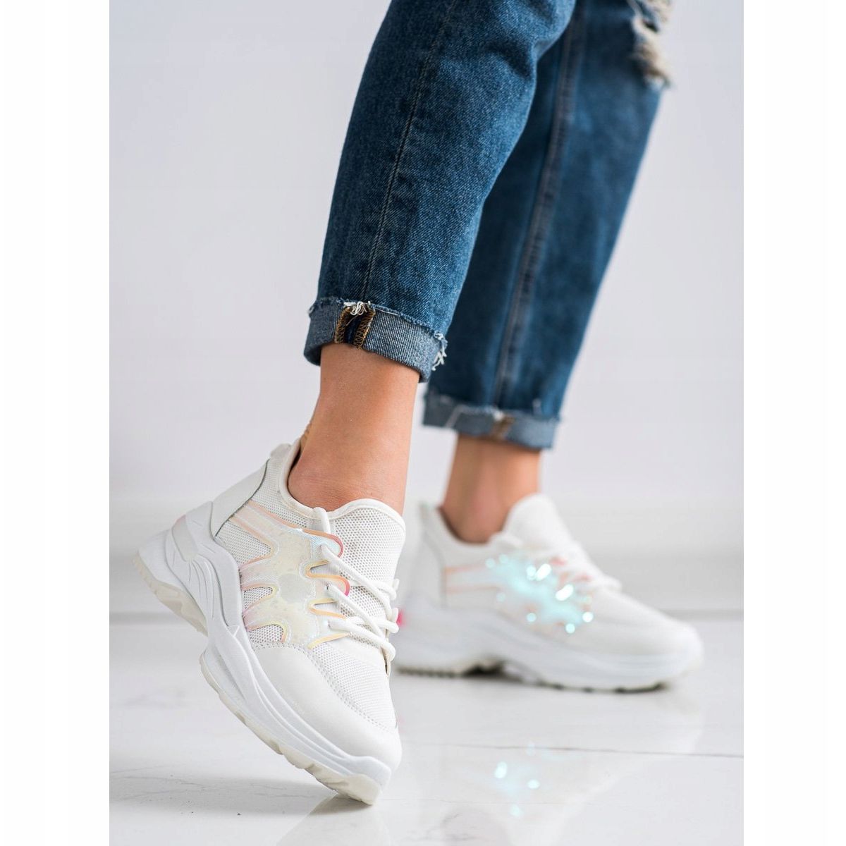 Discover style and comfort with the SHELOVET spring sneakers with a holo effect in a shade of white. This model is a perfect combination of fashionable design and comfort that will meet the expectations of every woman. These sneakers, made of high-quality materials, almost magically shimmer in the sun's rays, adding shine to every styling.