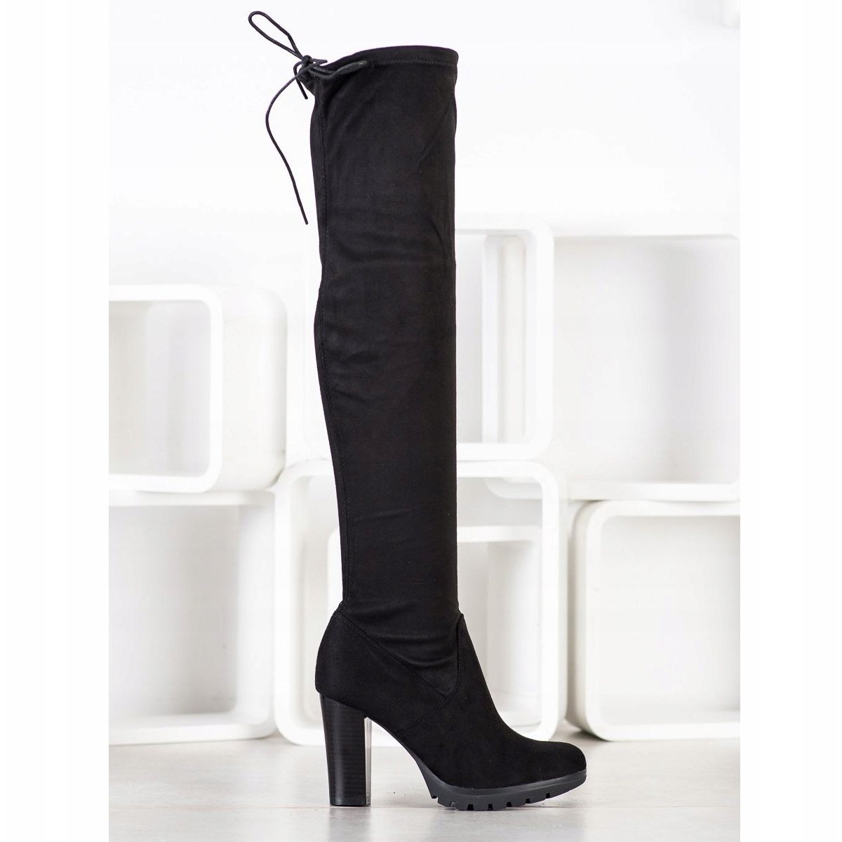 Black over the knee boots are equipped with a strong, stable 9 cm heel, which provides not only an elegant look, but also comfort when worn. Additionally, the insole that reduces pressure makes every step a pleasure. The zipper makes it easy to put on and take off, and the built-in, stiffened heel adds stability.
