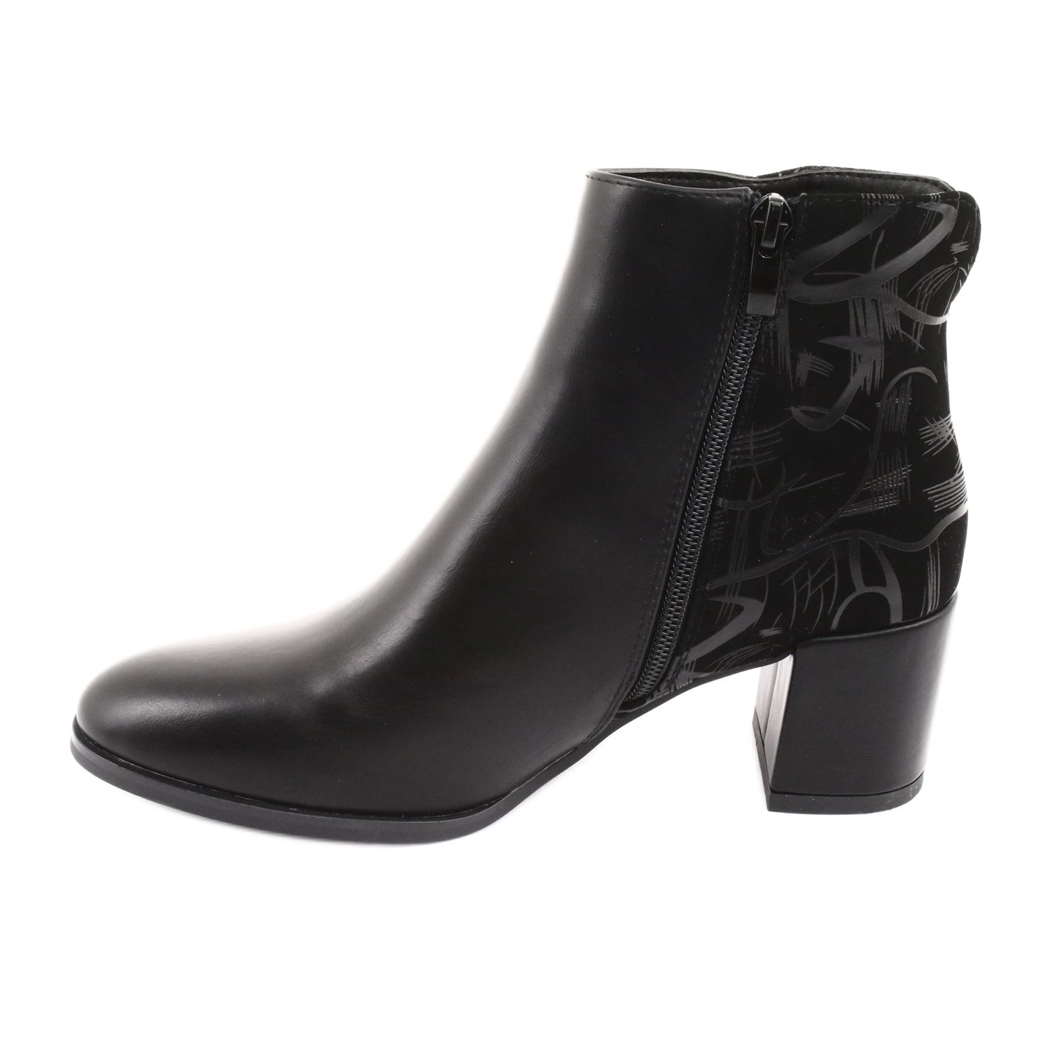 Discover elegance and comfort in one! Sergio Leone 521 women's ankle boots on a block heel are a great choice for every woman who wants to combine classic with modern style. These extremely effective ankle boots have been carefully crafted from high-quality ecological leather and suede with a unique print, which makes them eye-catching and adds chic to any styling.