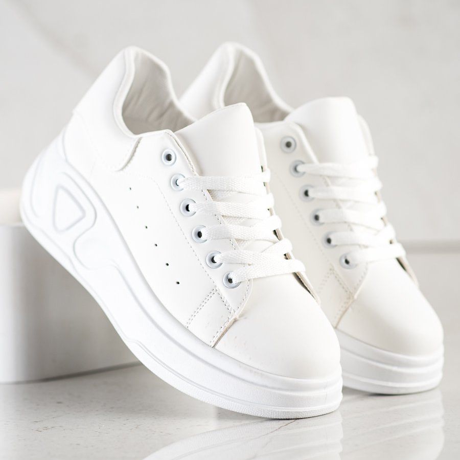 SHELOVET Stylish Sneakers Made of Eco Leather in white are the perfect choice for women who value both comfort and a fashionable look. These classic sports shoes on a 5 cm platform combine the latest trends with everyday comfort, making them a great everyday companion.