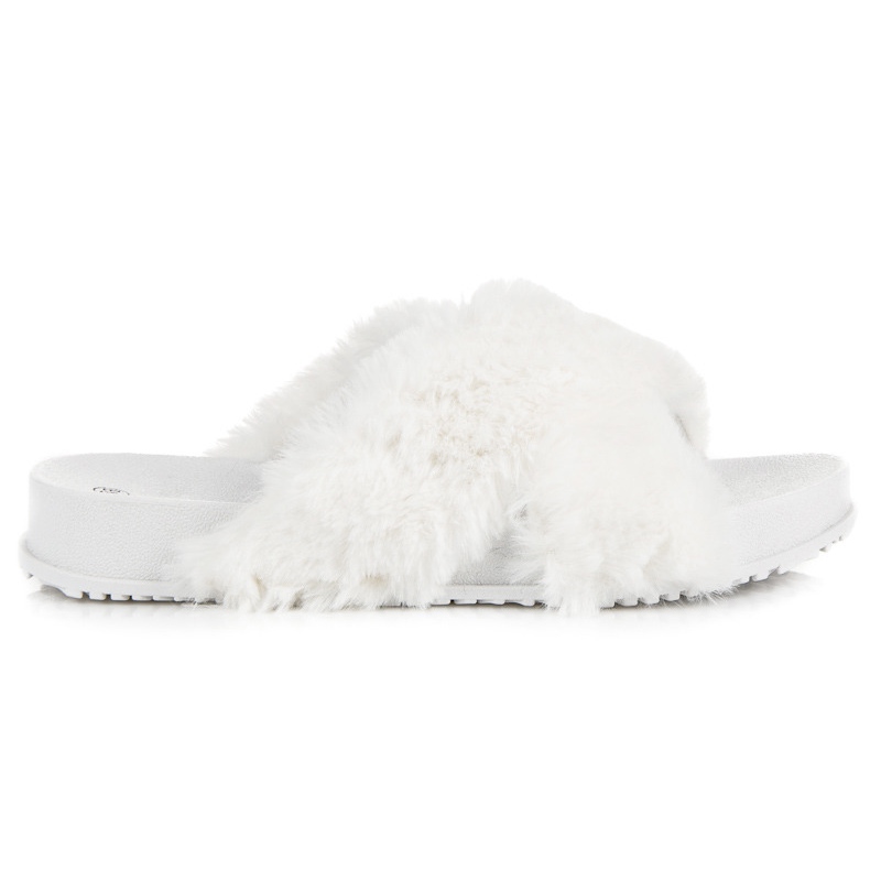 Details: Stylish fur slippers white