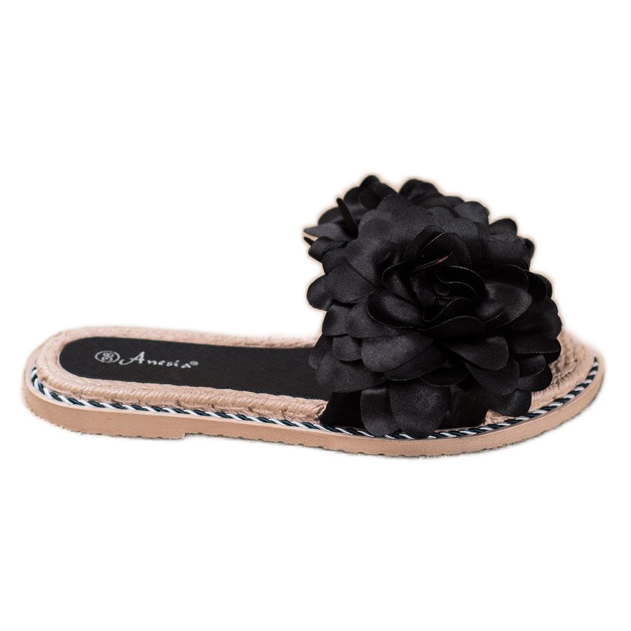 Discover elegance and comfort in summer with the Anesia Paris women's flip-flops in black! These unique flip-flops are distinguished by a large flower decoration that adds extraordinary charm and makes them ideal for a variety of styles. Regardless of whether you are going for a walk in a skirt or planning a summer adventure in shorts, these universal flip-flops will be a perfect complement to your wardrobe.