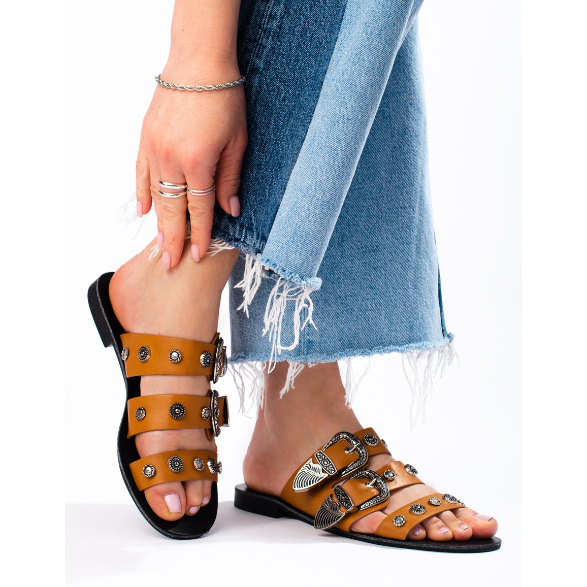 The brown color of the flip-flops perfectly matches many styles, which means they can be worn in both casual and more fashionable combinations. The material of the insole, made of ecological leather, increases the comfort of wearing, taking care of your feet even during a long day spent on your feet.