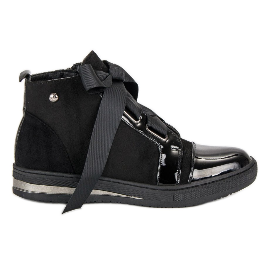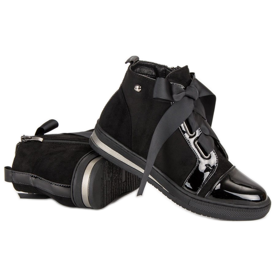 These are stylish Filippo high-top sneakers that combine elegance and sporty casualness, perfect for everyday wear. These black shoes, made of a combination of patent eco-leather and suede, are perfect for any season. The fur-lined interior provides thermal comfort, making them a great choice for autumn and winter.