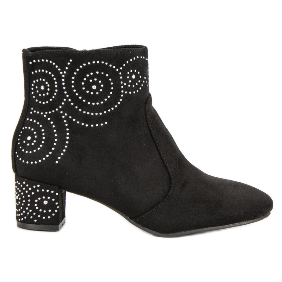 Thanks to the round toe and zip fastening, putting them on your feet is quick and comfortable. The heel height of 5 cm makes them not only stylish but also practical - ideal for everyday styling. Additionally, decorations in the form of rhinestones on the suede and heel give them a unique character, distinguishing them from other models.