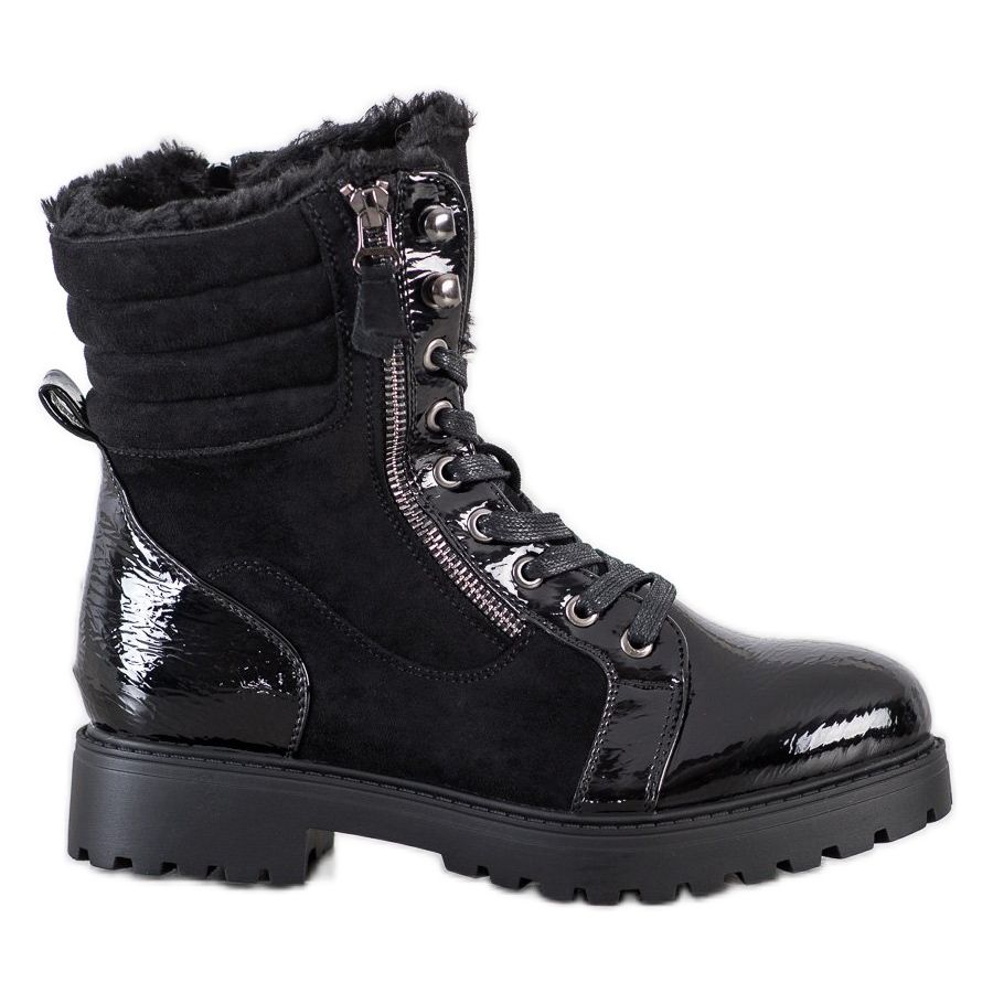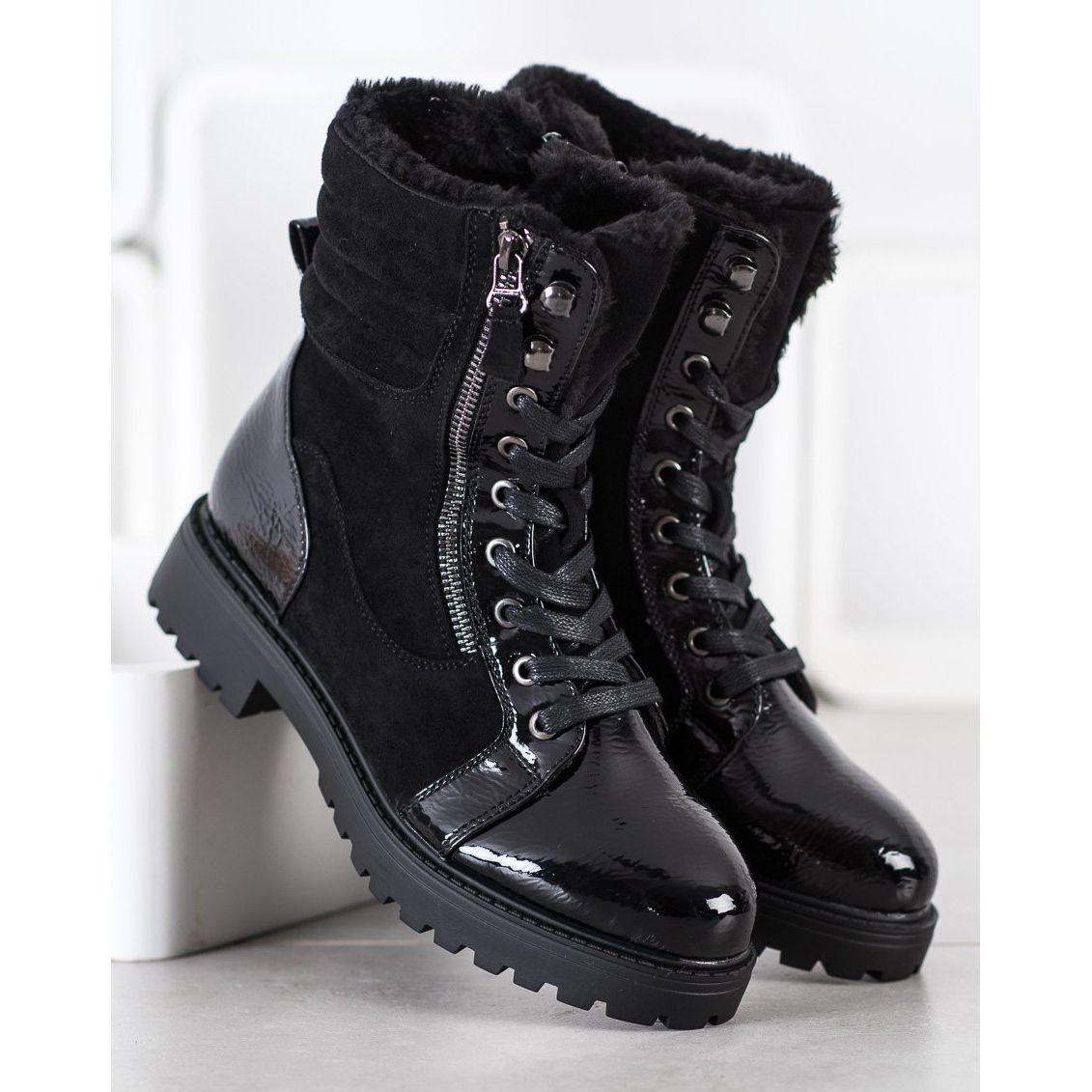 Made of high-quality materials, the boots have an ecological leather upper and a soft, textile inner material, which guarantees comfort. The black, patent finish gives them an elegant character, and the round toe and closed, soft heel counter ensure a perfect fit and comfort.