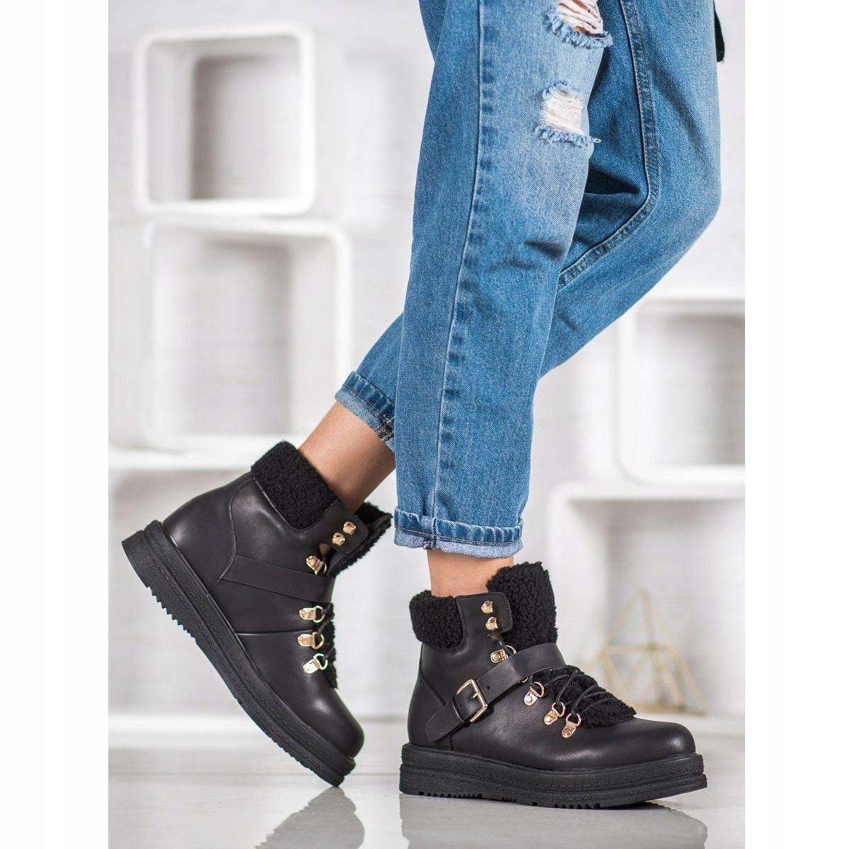 The boots have lacing, thanks to which they can be perfectly adjusted to the shape of the foot, which ensures comfort of wearing. Secured with sheepskin on the upper and a decorative buckle, they attract attention and add character to any styling. The sole with tread provides stability and comfort while walking, and the heel height of 3-5 cm favors long-term use without feeling tired.