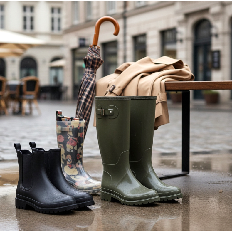 Rainy weather doesn't have to mean sacrificing style! The times when Wellington boots were just sad, rubber footwear for the garden are long gone. Today, designers offer models that closely resemble elegant boots or fashionable Chelsea boots. Which rain shoes should you choose to look great and keep your feet dry?