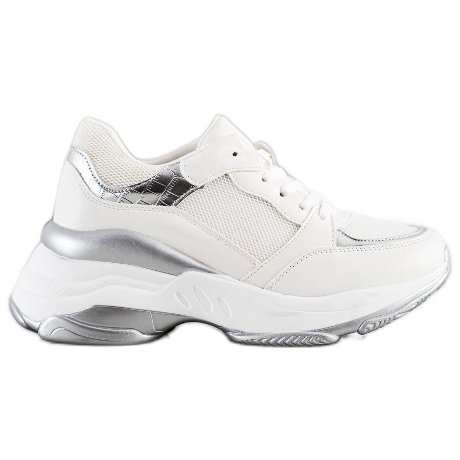 **SHELOVET Stylish WHITE-SILVER Sneakers**