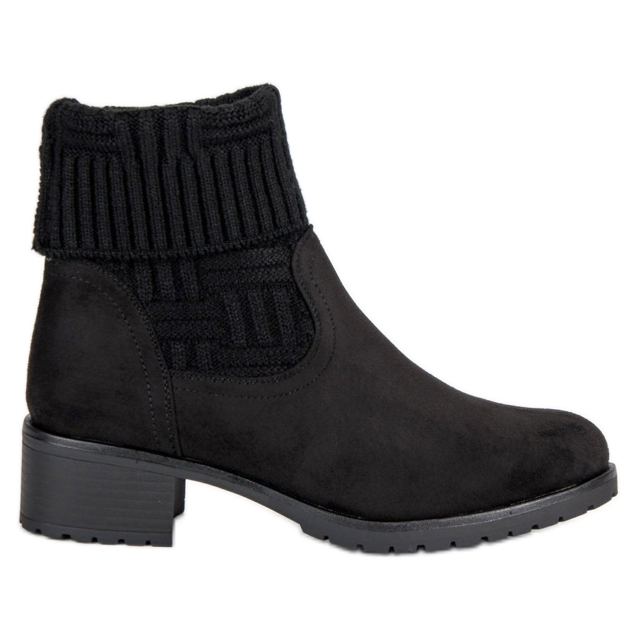 Stylish women's Seastar ankle boots in black are the perfect footwear for the cold days of the autumn-winter season. Made of ecological suede, they combine elegance and functionality. The ankle boots have a slip-on construction, which makes them easy to put on, and their extremely fashionable element - a stretchy, knitted upper - adds originality to them.