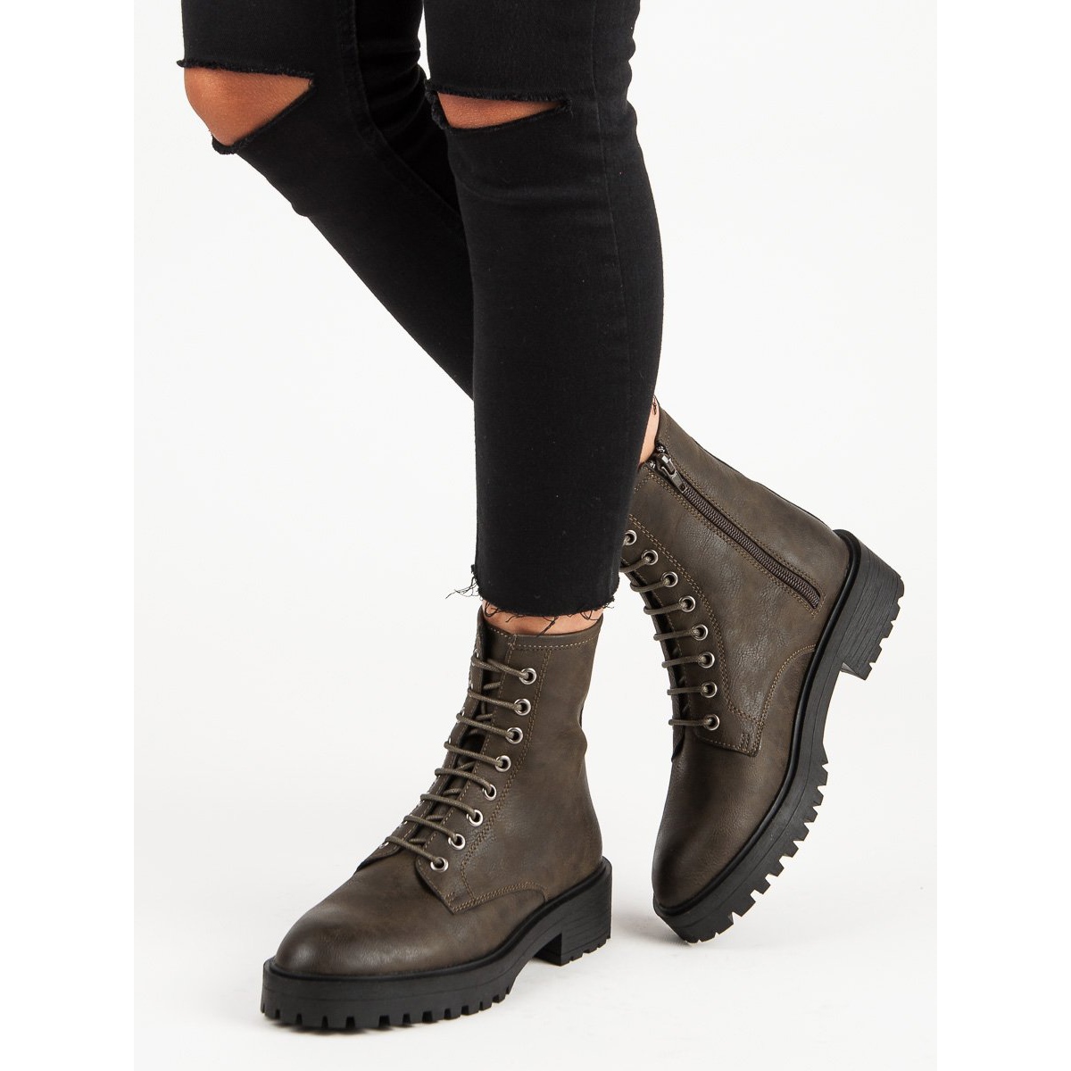 Green Stylish Worker Combat Boots Corina are a must-have in the wardrobe of every woman who values fashion, comfort and practicality. With them, you will create unique, casual looks that will be suitable for any occasion. Don't wait! Choose Corina and focus on comfort and style!