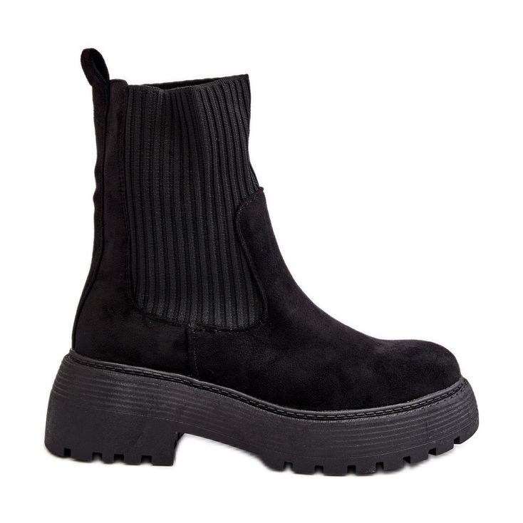 We present extremely stylish and comfortable **Black Rewam Suede Ankle Boots With A Sock On A Platform And A Flat Heel** - the perfect choice for every woman who values the combination of elegance and modern design. These uniquely constructed boots are an absolute must-have for the upcoming Autumn/Winter season.