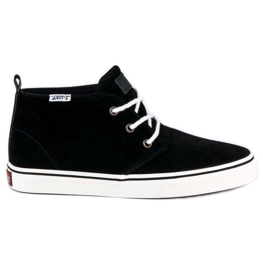 Andy Z sneakers are universal - they are perfect for spring, summer, as well as for cooler days in autumn and winter. Black, suede footwear with short white lacing is a great addition to casual styling, and the ANDY-Z logo on the tongue and back of the sole emphasizes their unique style.