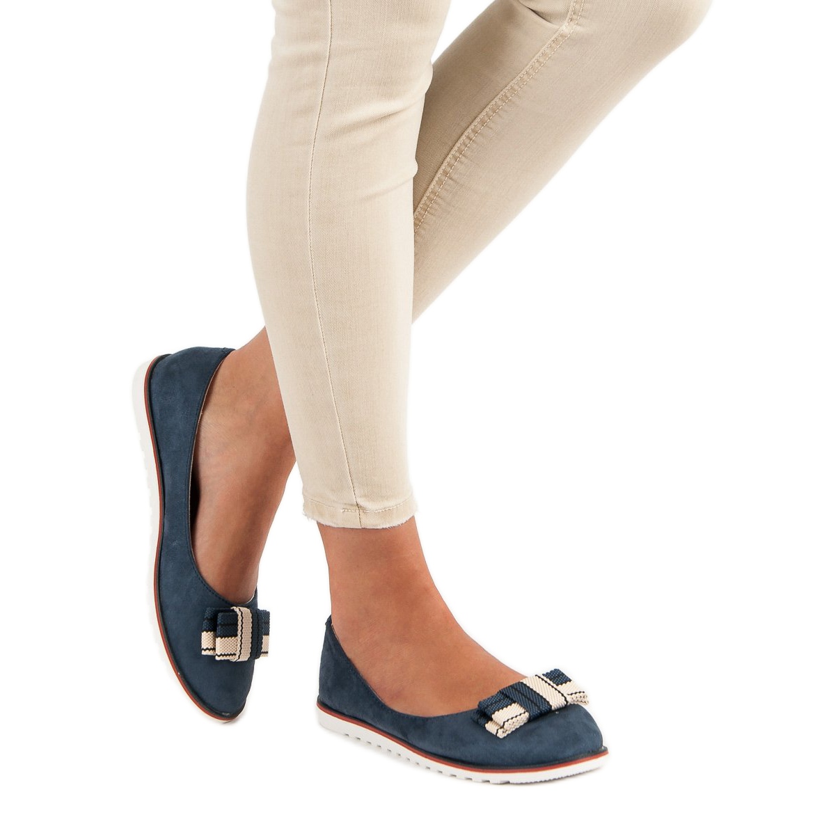 Introducing the brown and navy suede ballerinas that combine elegance and comfort! Made of eco-suede, these shoes are the perfect choice for women who prefer a casual style. Discover their unique design - a combination of navy, brown and white, as well as a subtle bow on the front that adds chic.