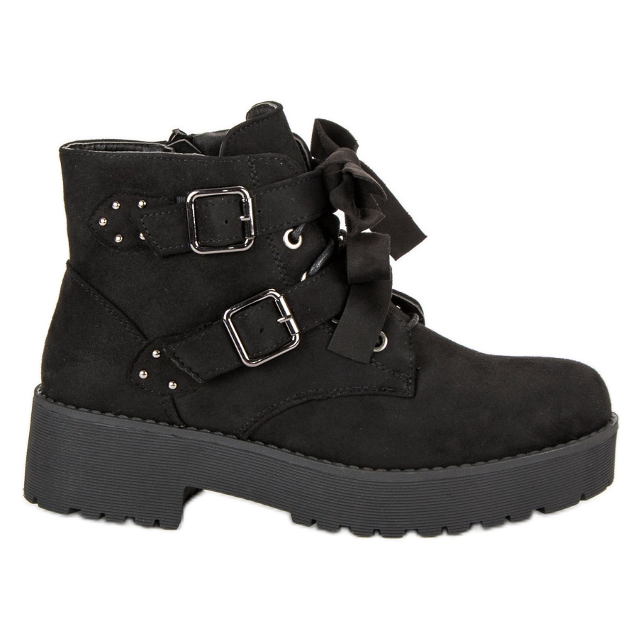 The shoes have a 5 cm flat heel and a 3 cm treaded platform, which makes them both stylish and comfortable. Additional adjustments in the form of buckles and lacing allow for a perfect fit to the foot, which is of great importance during everyday use. The zipper located on the inside makes it easy to put on and take off the boots.