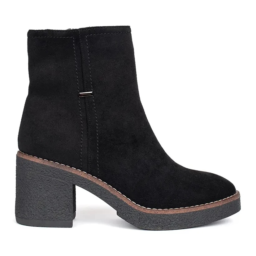 Suede black boots on the post is an ideal proposition for women who value elegance and comfort in everyday use. Made of high quality ecological suede leather, these stylish boots guarantee not only an attractive appearance, but also comfort of wearing. The black, smooth finish makes them perfectly fit into various stylizations - from casual to more elegant.