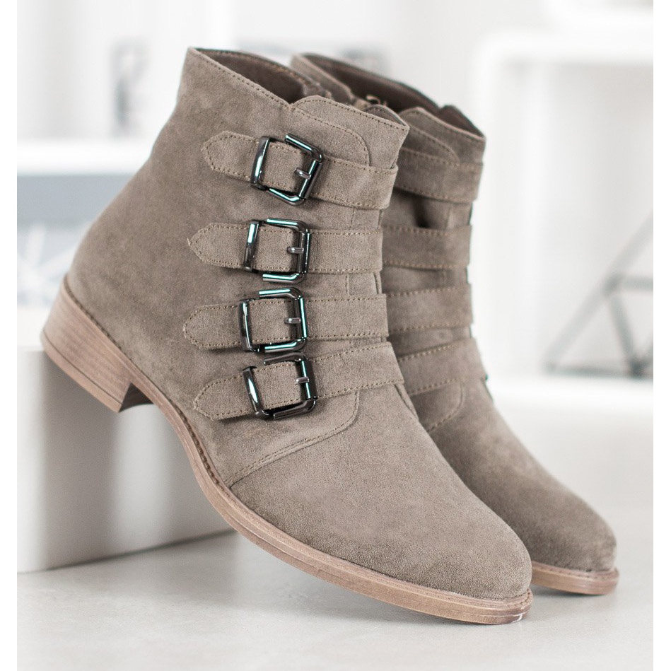Introducing the Sergio Leone Suede Buckle Ankle Boots in an elegant khaki shade, which are the perfect choice for the fall/winter season. Made from high-quality, eco-friendly suede leather, these women's ankle boots combine style and comfort.