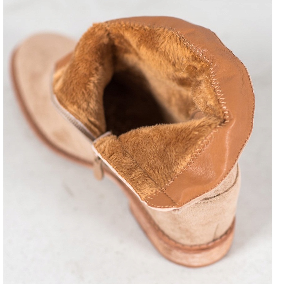Discover elegance combined with comfort with Bella Paris beige ankle boots with rhinestones. Made of high-quality eco-leather with a suede finish, these stylish shoes are perfect for the fall/winter season.