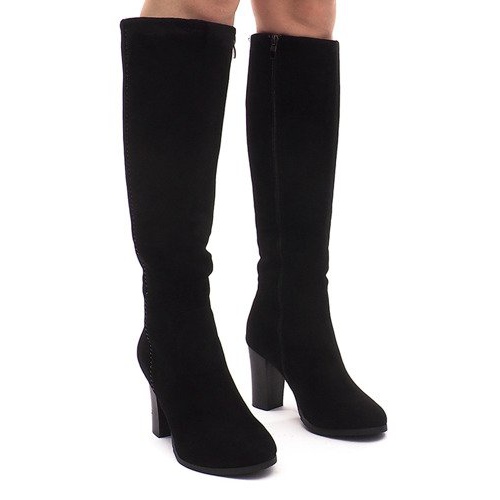 Discover elegance and comfort with suede KSL006 block heel boots in classic black. These high women's boots with an 8 cm block heel combine fashionable design and practicality. The non-slip sole provides stability and warmth, making them an ideal choice for colder days.