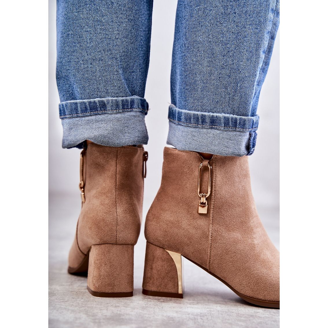 We present suede ankle boots with a Beige Erine decoration from the PS1 manufacturer, which will perfectly fit into your autumn-winter wardrobe. These elegant ankle boots are made of pleasant to the touch ecological suede, which not only looks beautiful but also provides comfort of wearing.