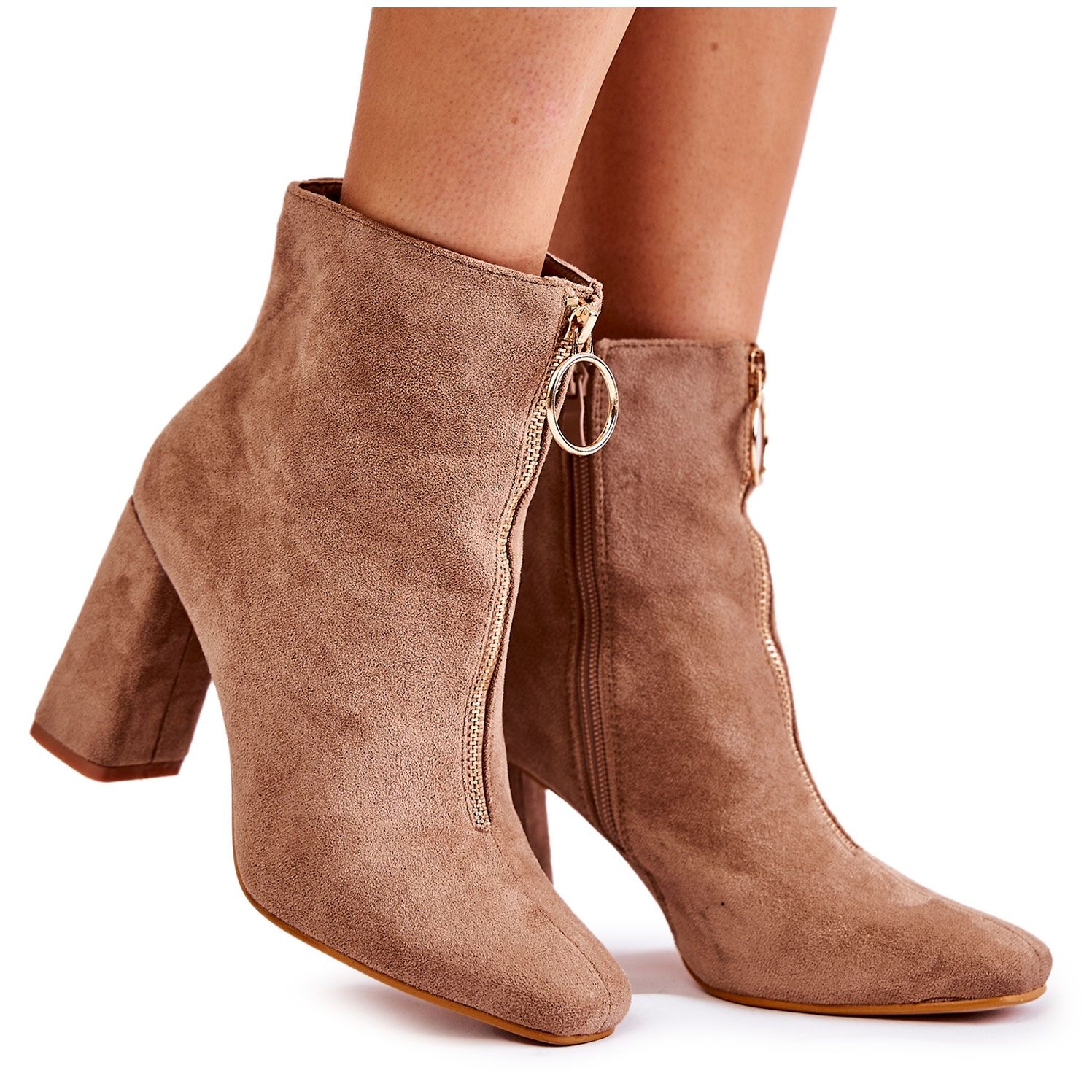 PG1 PG1 Suede Boots On High Heels With A Decorative Zipper Beige Lisette brown