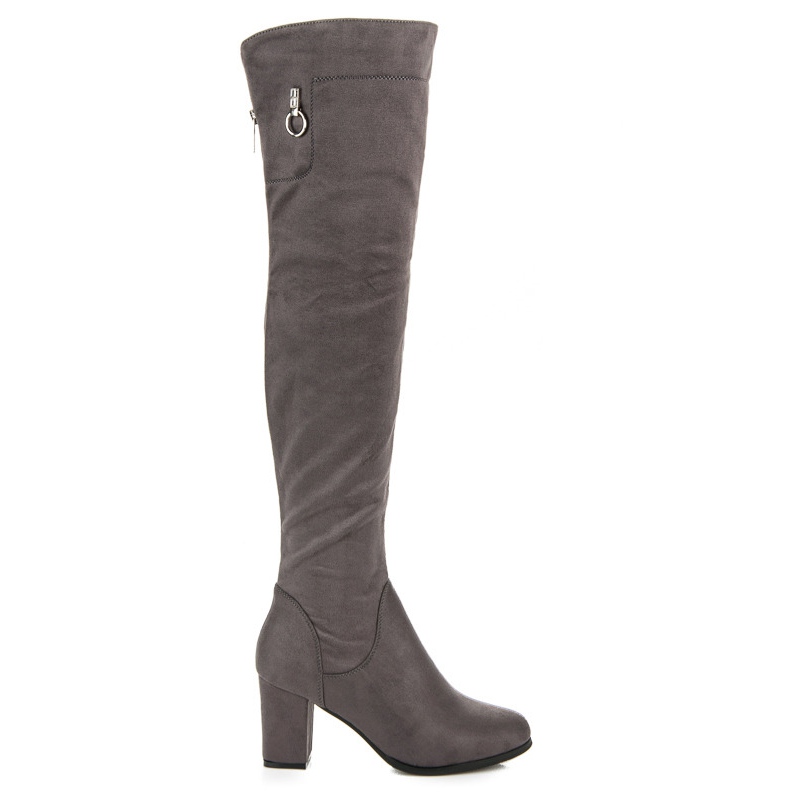 The upper above the knee not only adds style, but also provides adequate insulation, making them an ideal choice for colder days. The round toe guarantees comfort, and the solid 8 cm block heel adds slimness to the silhouette without weighing down the feet.