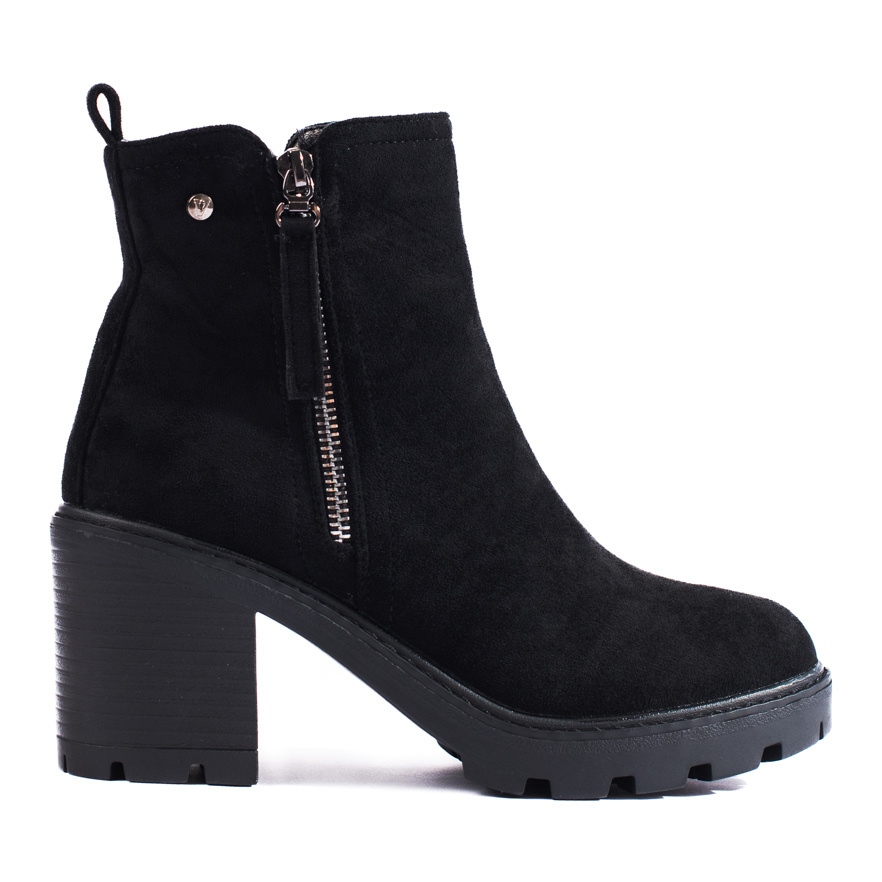A wide post, 8 cm high, offers stability while maintaining an elegant appearance. This type of heel is a convenient option for those who want to add a few centimeters of height without sacrificing comfort while walking. The zipper closure makes it easy to put the boots on and take them off quickly and adds a practical aspect to everyday use.