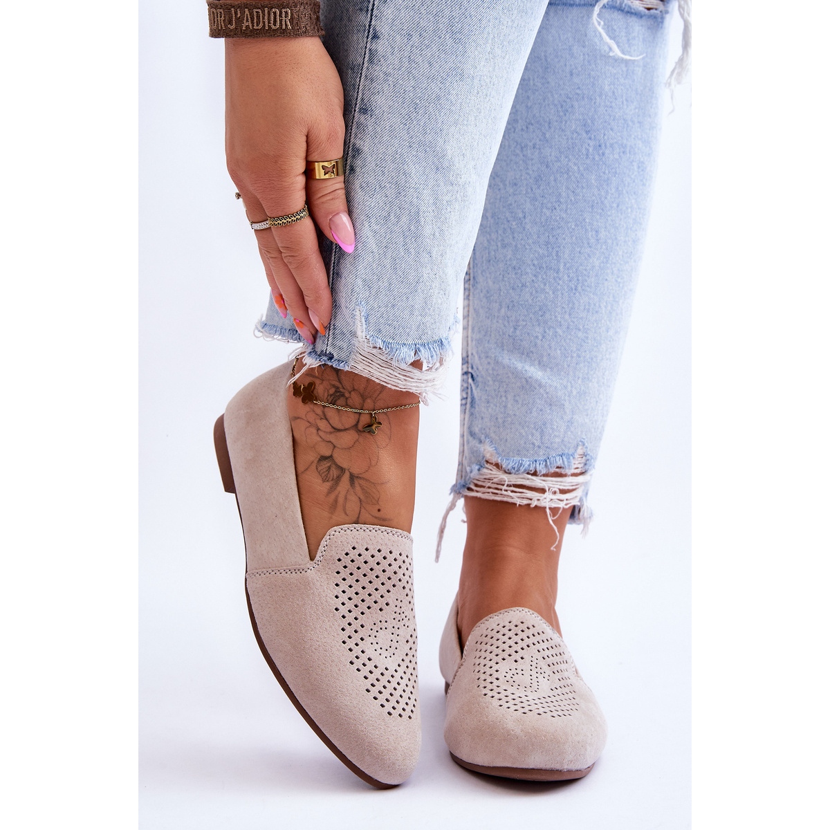 S. Barski Giovana - Beige loafers made of natural suede, which combine elegance with everyday comfort. A delicate, openwork pattern on the front gives them lightness and subtle character, thanks to which they are great for the office and in urban stylizations. The model is embedded on a flat heel (1 cm) with a non -slip, synthetic sole, and a slightly stiffened heel ensures stability during each step.