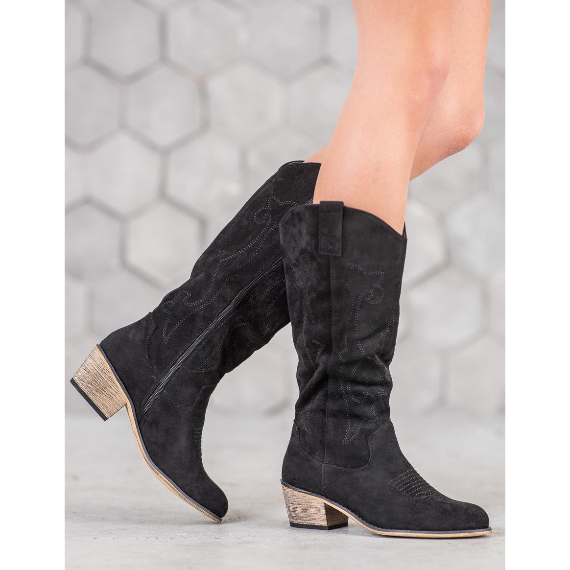 Discover extraordinary style and comfort with Abloom cowboy boots in black! These women's boots are the perfect combination of elegance and everyday comfort, designed with modern women in mind. Made of high-quality ecological suede, they guarantee not only an attractive appearance, but also durability and protection against adverse weather conditions.