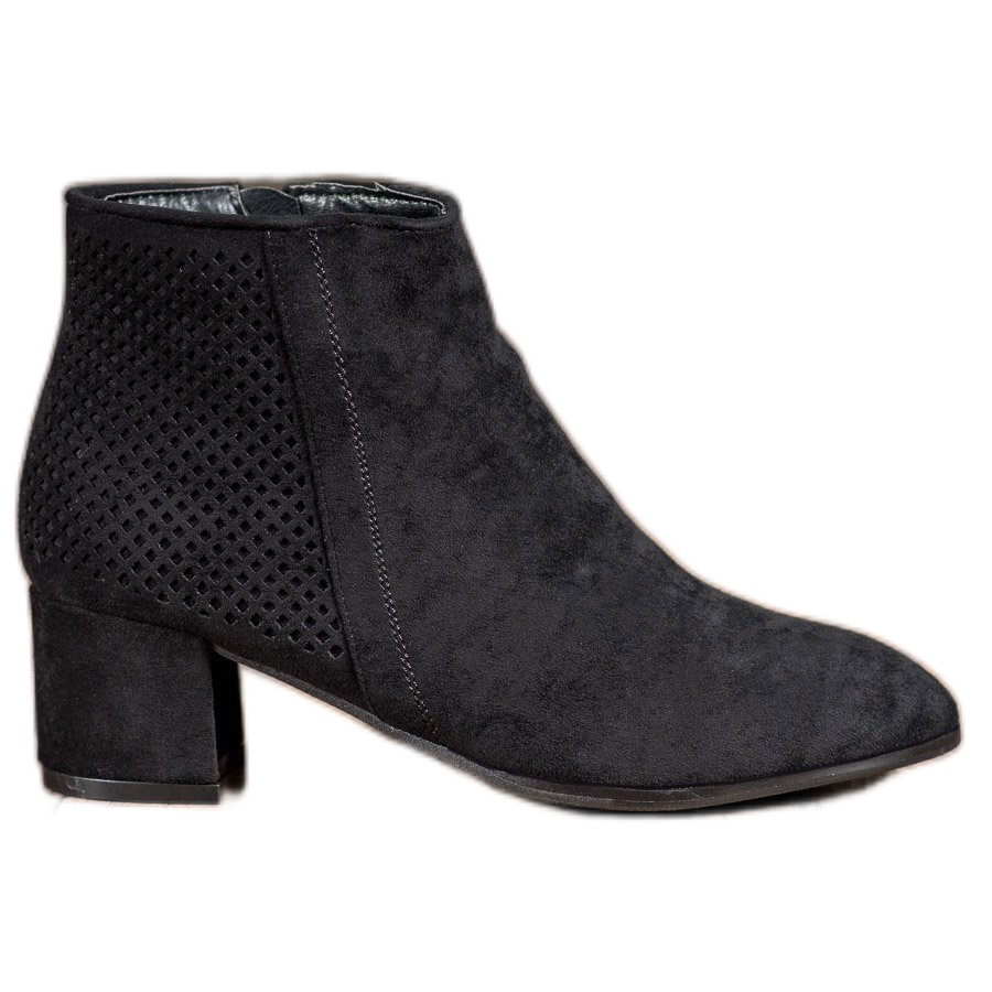 The high 5 cm block heel perfectly combines style with comfort, allowing you to move freely without worrying about foot fatigue. The upper, reaching above the ankle, additionally emphasizes the feminine cut of the boots, and the openwork finish at the back gives them a unique character.