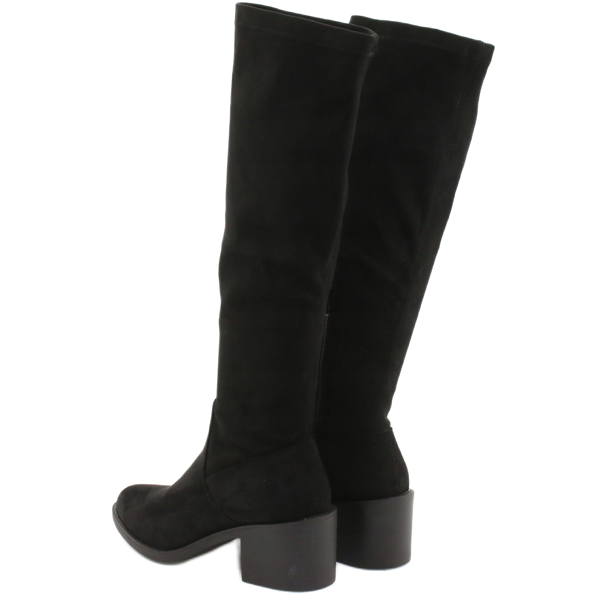 Discover the elegance and comfort offered by the DKZ1585/20 BK suede knee boots from Filippo. These women's boots in classic black are made of high-quality textile material - stretch suede, which perfectly adapts to the shape of the leg, ensuring comfort and a fashionable look.