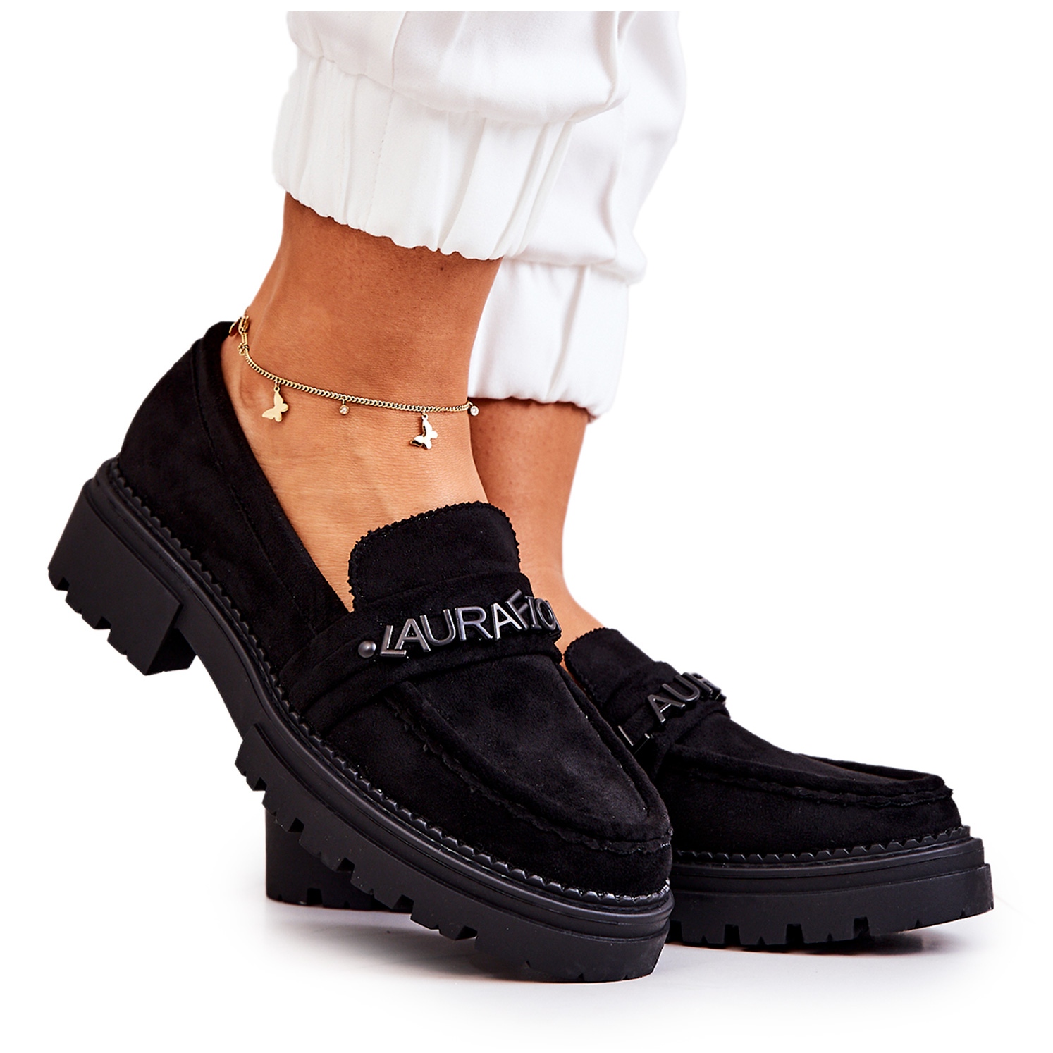 Details: PL5 Suede Loafers Letters La.Fi Black Jenefer