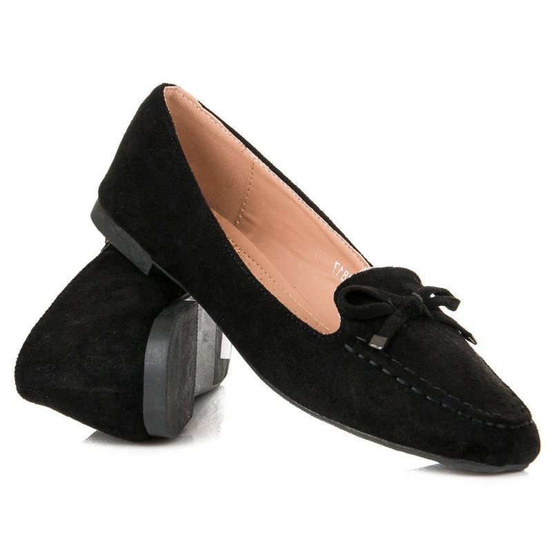 Discover the elegance and comfort offered by the Small Swan women's loafers in black. These stylish shoes have been carefully crafted from high-quality ecological suede, which makes them not only environmentally friendly but also extremely comfortable to wear. Decorative stitching and a bow with a delicate ribbon and metal tips emphasize their unique design, which perfectly fits into current fashion trends.