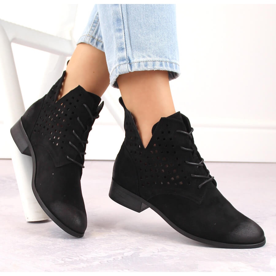 Choose Openwork suede ankle boots with a flat heel black Potocki SZ12089 and discover how much they can add to your wardrobe!