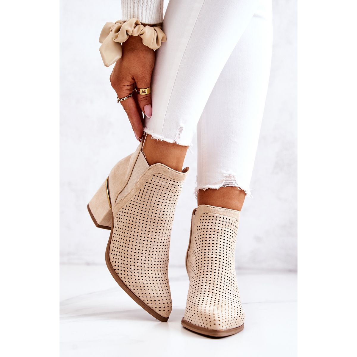 Details: PS1 Suede Openwork Cowboy Boots Light beige Helloni