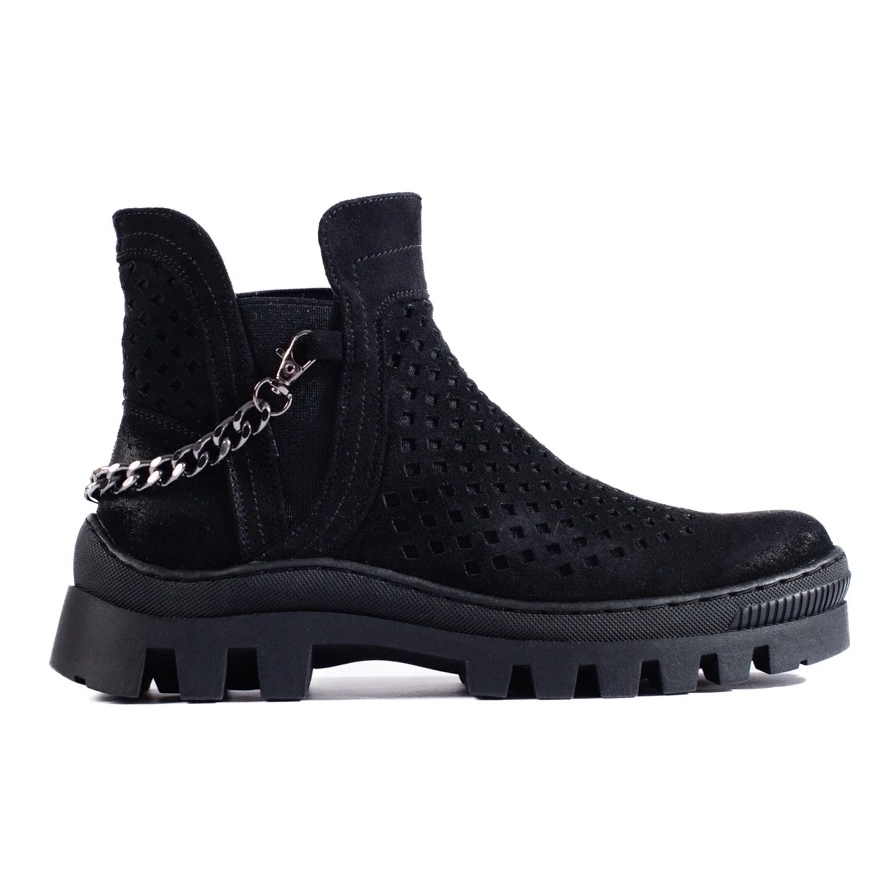 Elegant and comfortable W. Potocki boots that combine a casual style with subtle elegance. Made of ecological suede leather with openwork cutouts, perfect for warmer days of the autumn season, when you are looking for airy and fashionable ankle shoes.