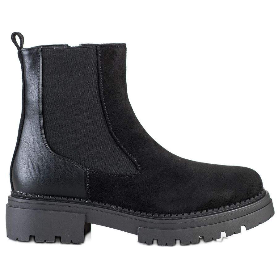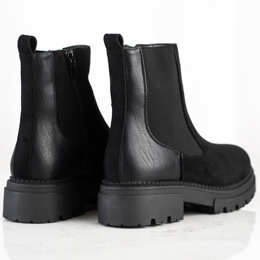 We present black suede platform ankle boots from the renowned manufacturer Evento, which are the perfect choice for the fall/winter season. These stylish women's shoes combine casual and rock style, which makes them extremely versatile - they are perfect for both everyday and evening outings.