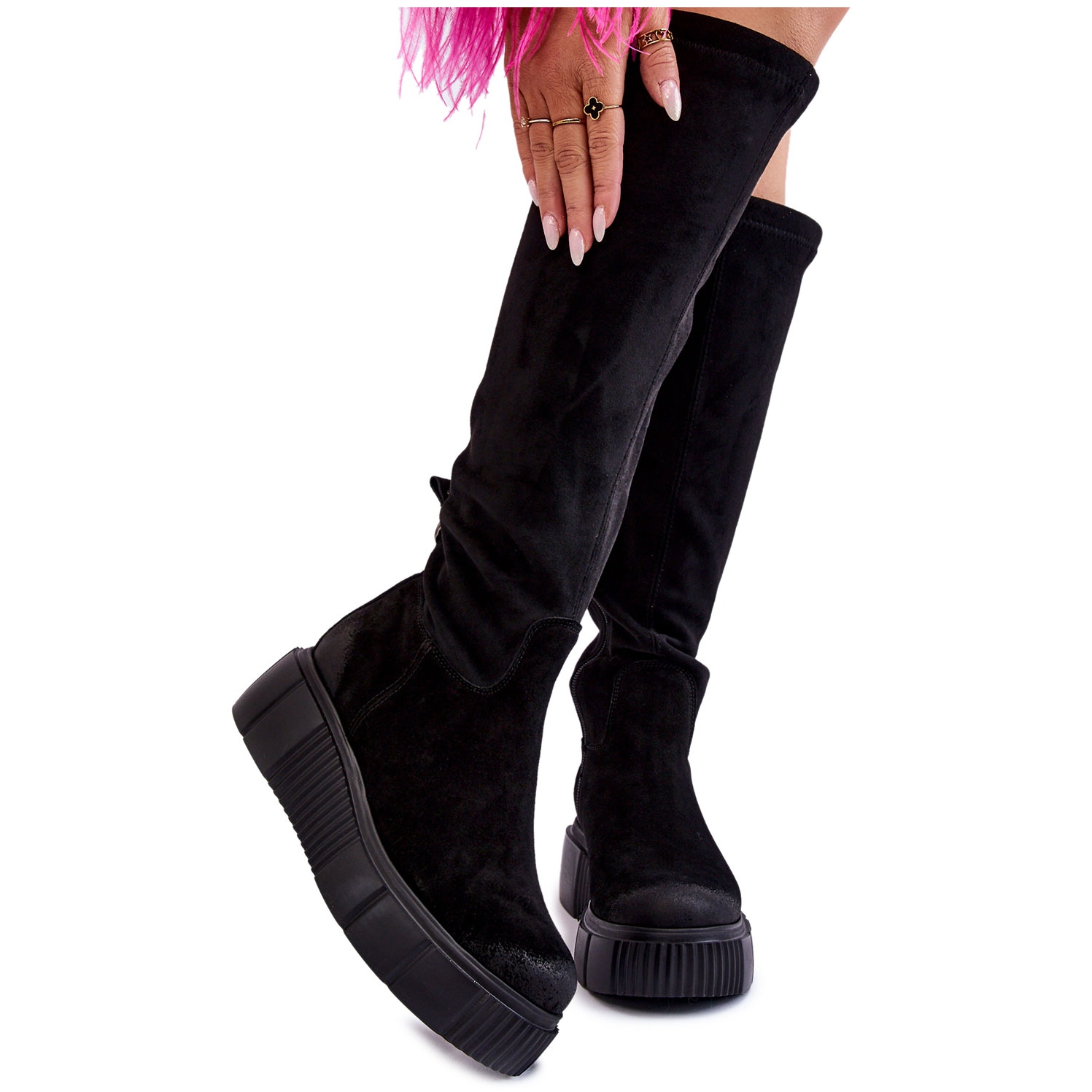 Details: PL5 Suede Platform Knee Boots Black Spectrum