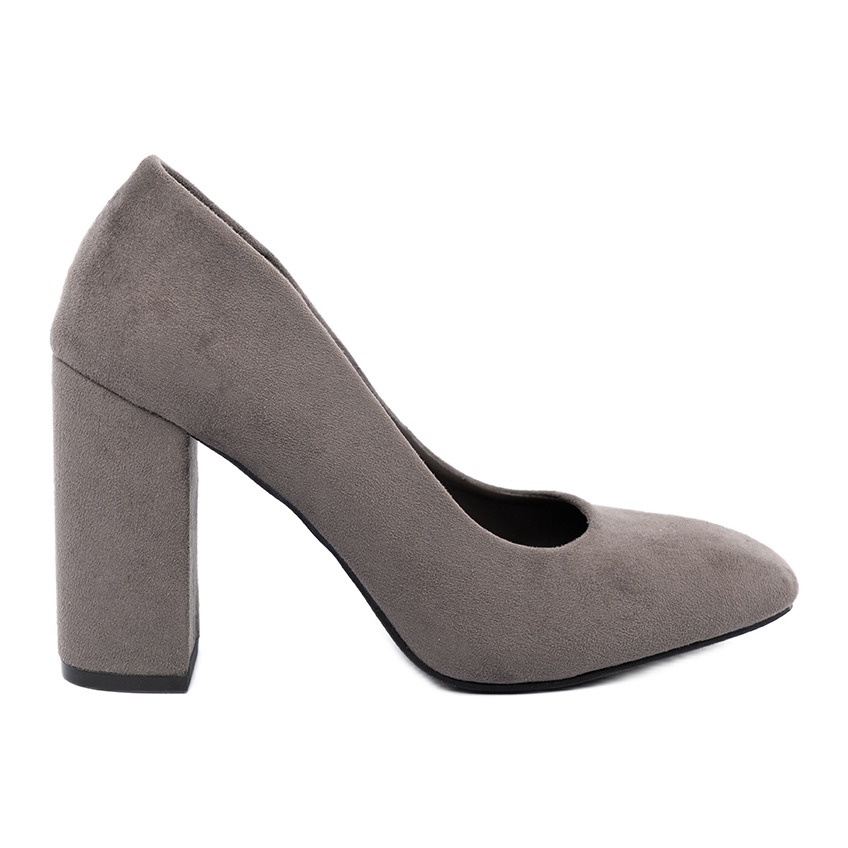 The high, 9.5 cm high, column-shaped heel not only slims the silhouette, but also ensures stability and comfort when worn, which is extremely important in everyday use. The use of high-quality ecological suede leather in the product makes the shoes look exceptionally elegant, and their universal gray color perfectly matches various styles.