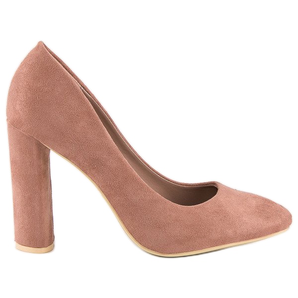 We present beautiful suede pumps on a block heel in pink from a well-known brand, which will be a perfect complement to any feminine styling. These elegant women's shoes combine exceptional design and comfort of use.