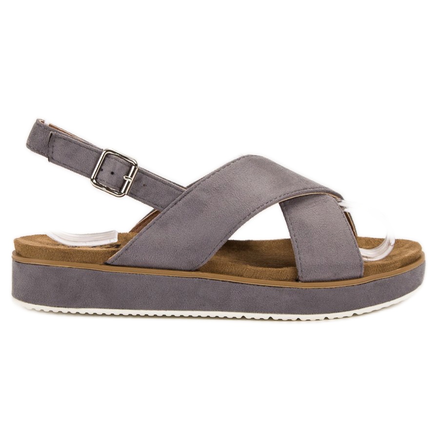 These grey sandals go perfectly with both classic jeans and airy shorts. Thanks to their universal, casual style, they will be a great complement to many everyday styles. Ideal for walks, shopping or meeting friends, these sandals with a flat 3.5 cm heel provide comfort and stability.