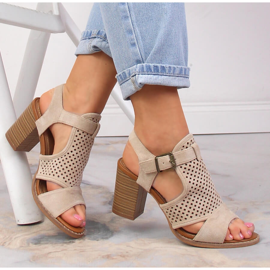 Details: Suede sandals on a post with an openwork beige upper eVento 3581