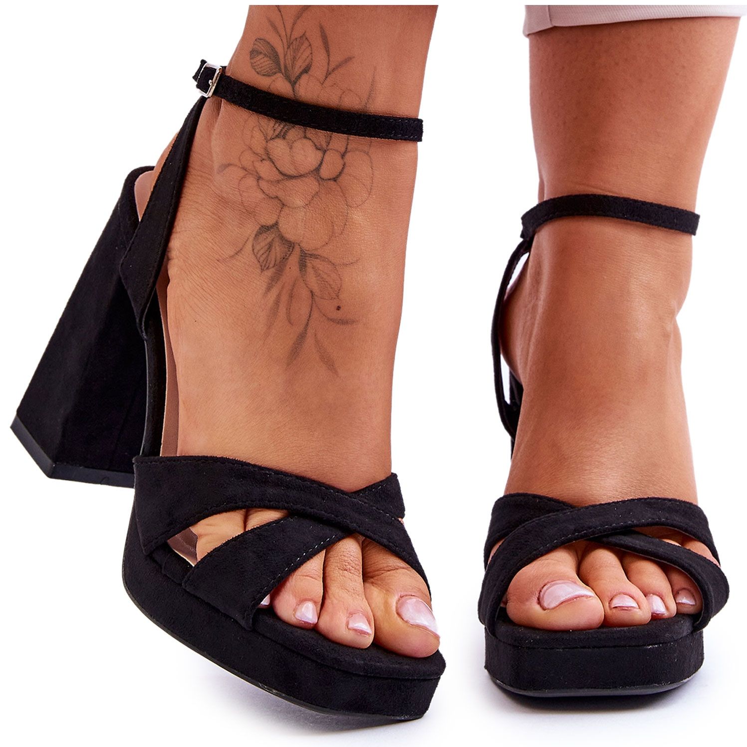 Discover comfort and style with suede sandals on a square heel in black. These elegant sandals have been carefully made of high quality eco suede, which makes them not only pleasant to the touch, but also look great on the feet.