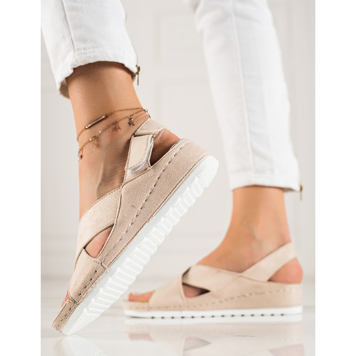 We present beige suede velcro sandals from the renowned Vinceza brand, which perfectly combine elegance and comfort. These classic sandals are the perfect choice for spring and summer days, which will add freshness to any styling.