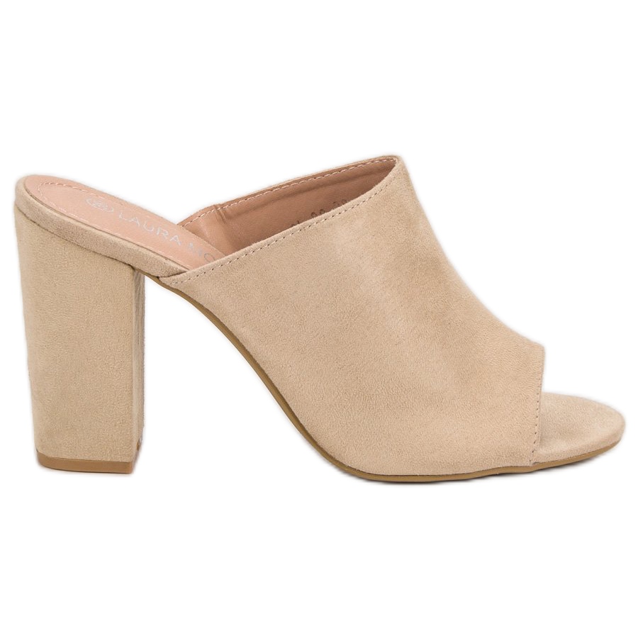 Discover the unparalleled style and comfort offered by Laura Mode's brown suede block heel mules. These elegant shoes are a great choice for spring and summer days when you want to feel fashionable and relaxed. Their minimalist design in a shade of light brown makes them a perfect match for a variety of styles, both casual and more elegant.