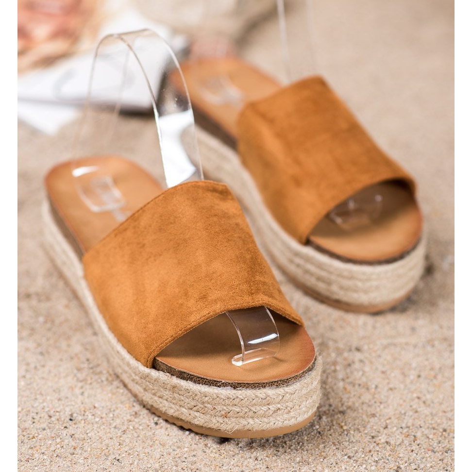Discover the unique style and comfort offered by the brown platform flip-flops from Renda. These elegant and casual shoes perfectly fit into the boho trend, and their universal design makes them a great complement to various styles.