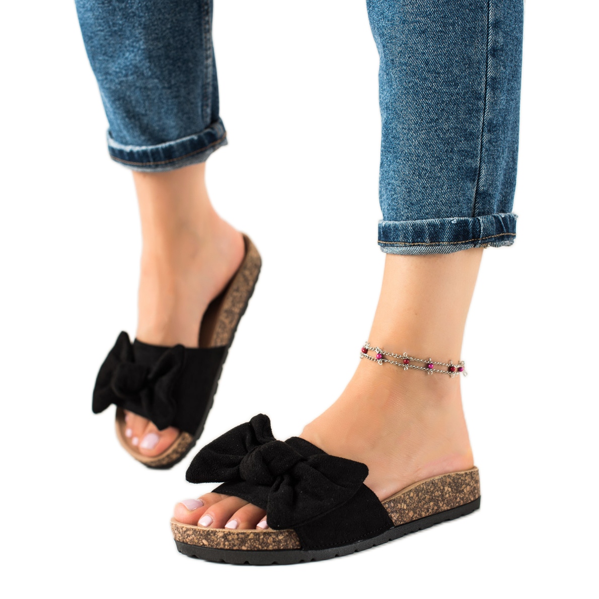 We present suede flip-flops with a bow from the renowned brand Queentina, which are perfect for everyday, casual style. These elegant flip-flops in black are a great choice for spring and summer, when comfort and style go hand in hand.