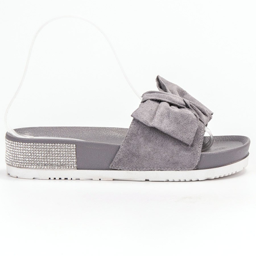 Details: SHELOVET Suede Slippers With Cubic Zirconia grey