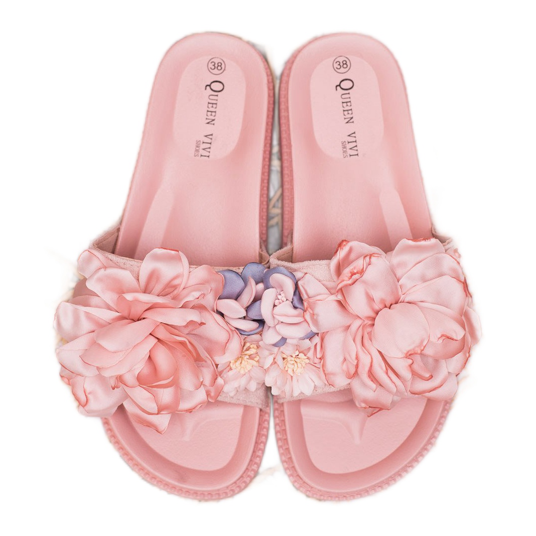 Details: Queen Vivi Suede Slippers With Flowers pink