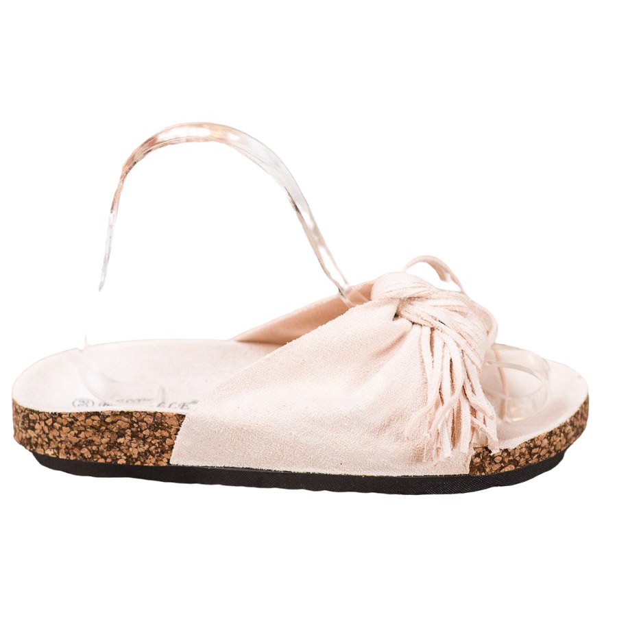 We present beige flip-flops from the Bestelle brand, which are the perfect choice for summer days! These stylish footwear impress with their casual character, working great in everyday stylings. Made of a material imitating suede, the flip-flops are not only aesthetic, but also very comfortable to wear thanks to the open heel.
